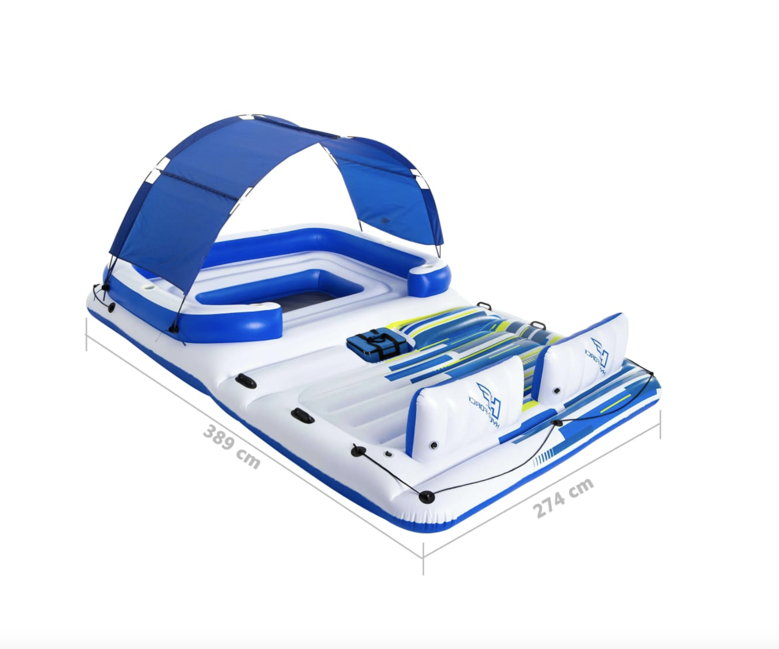 Las características principales de la Isla Tropical Breeze incluyen: asientos acolchados, toldo parasol desmontable, nevera incorporada y portavasos. ¡Hazte con la tuya y convierte cualquier día en una fiesta en el agua!
